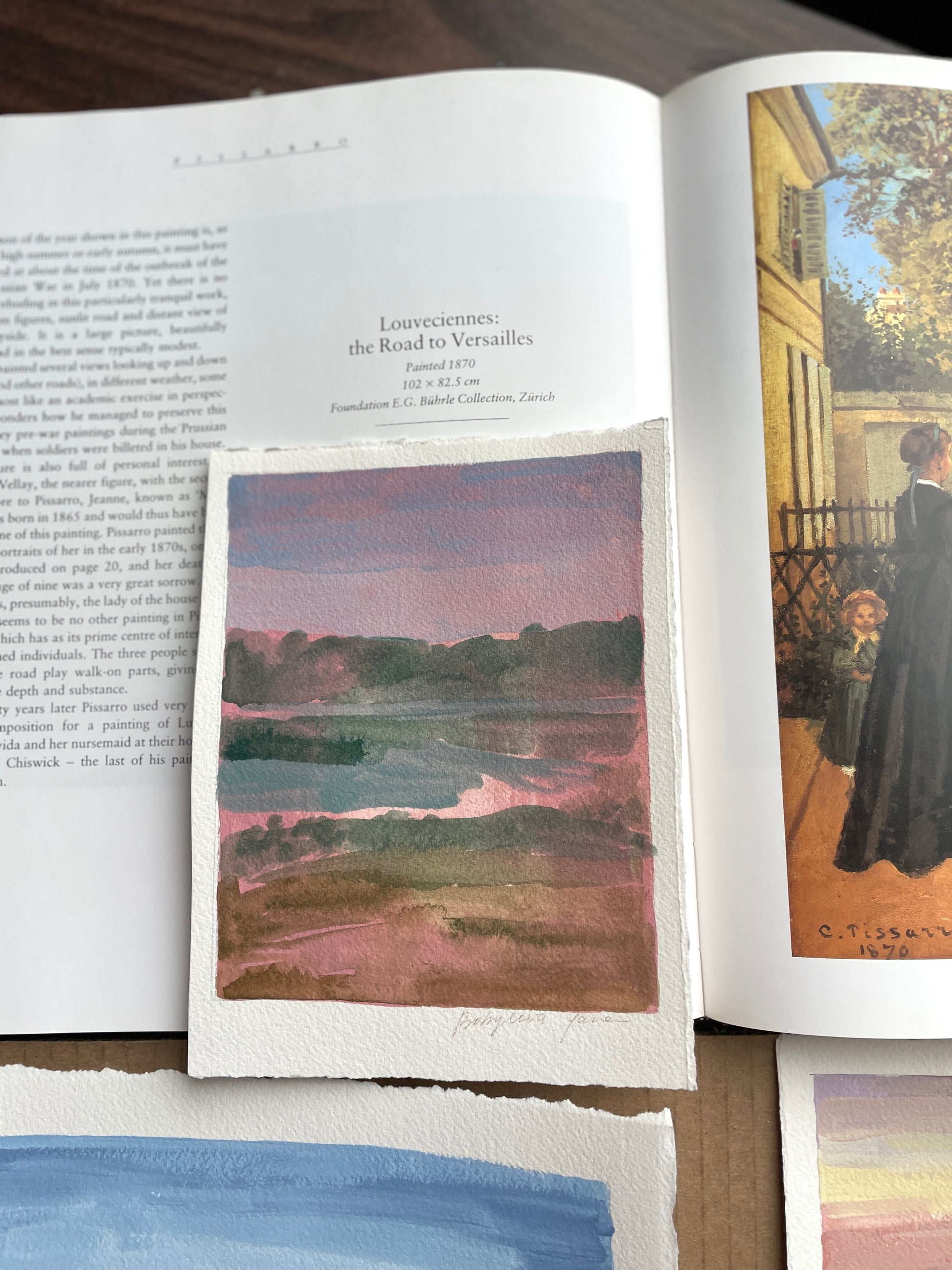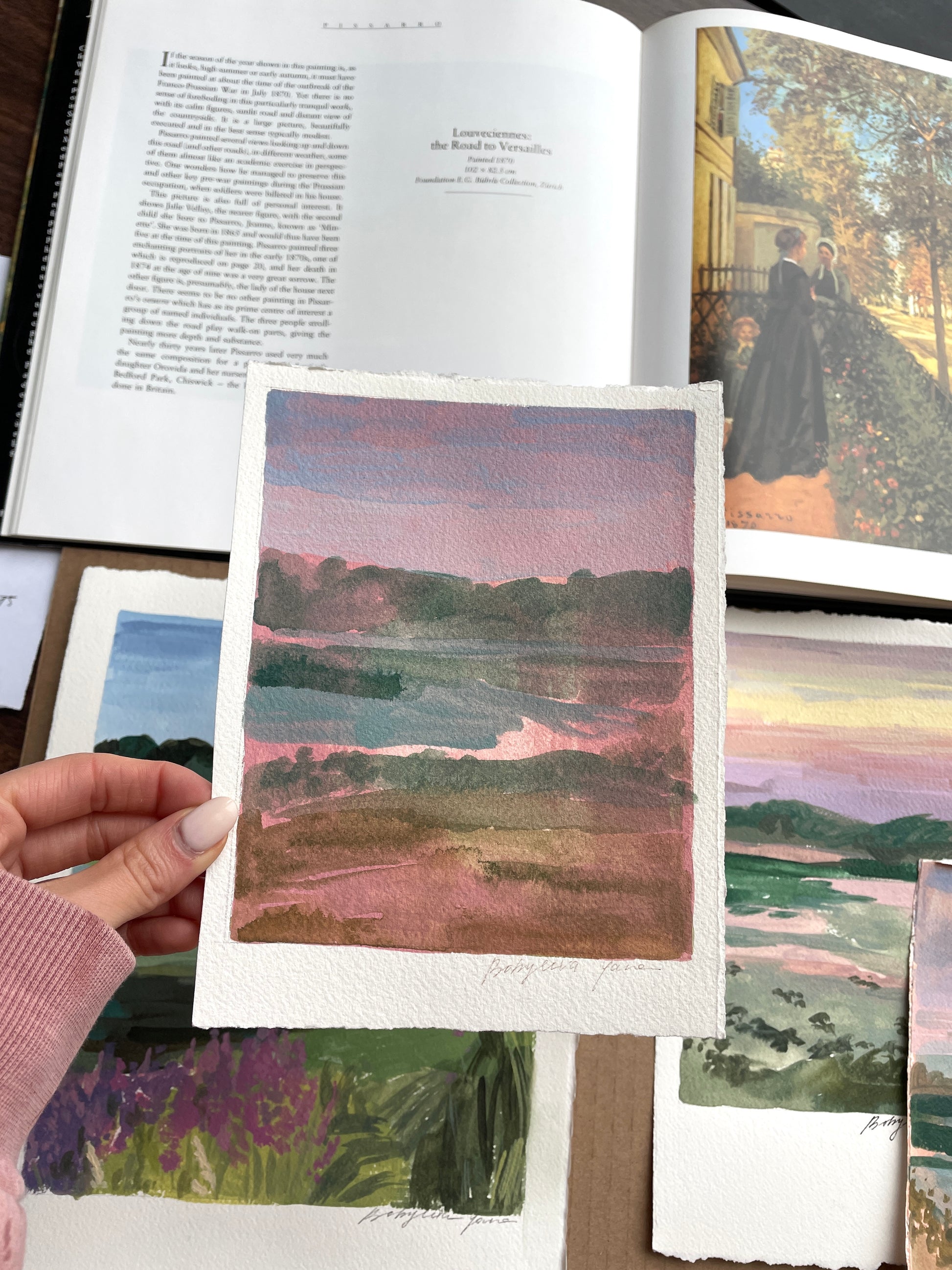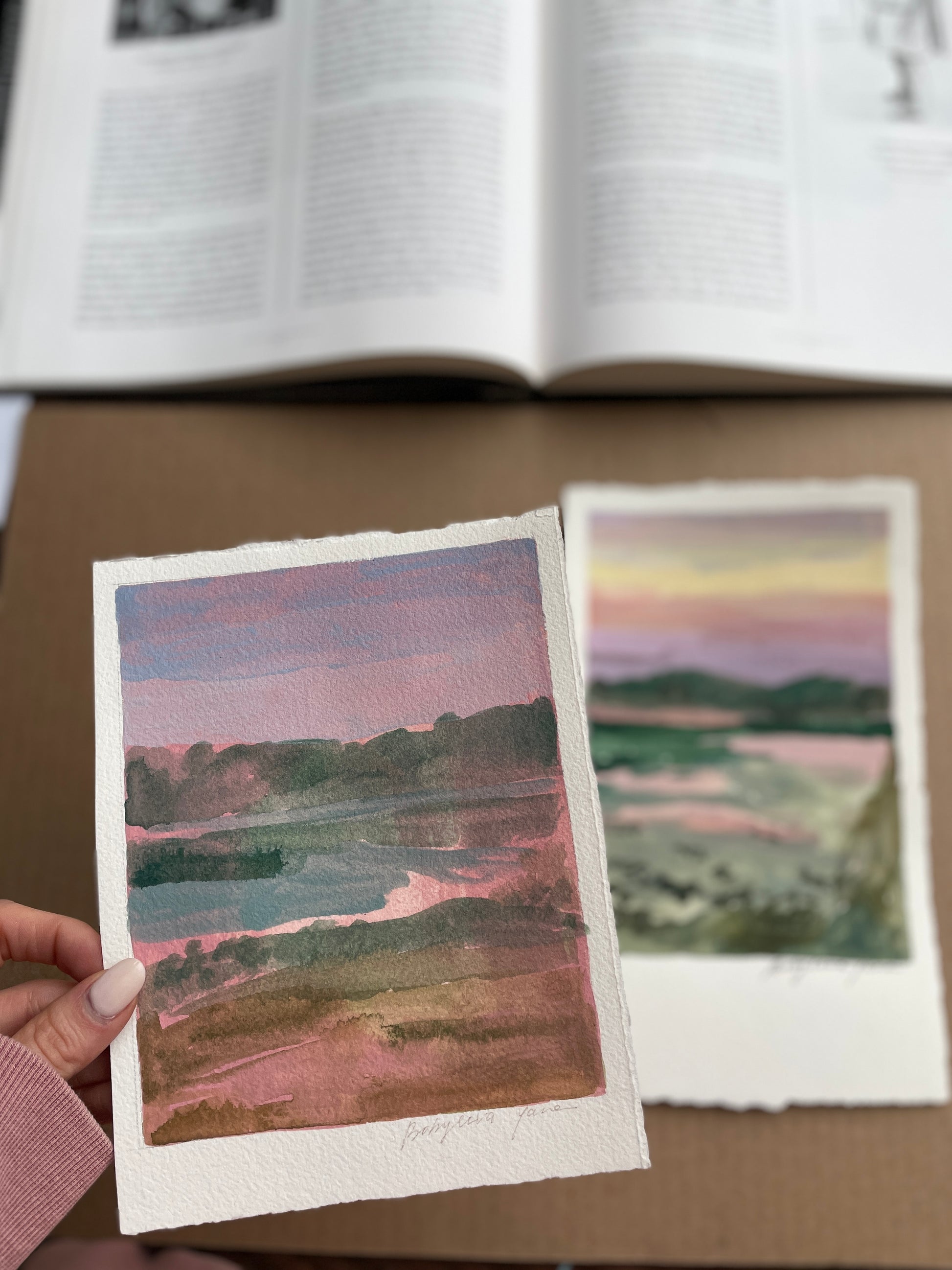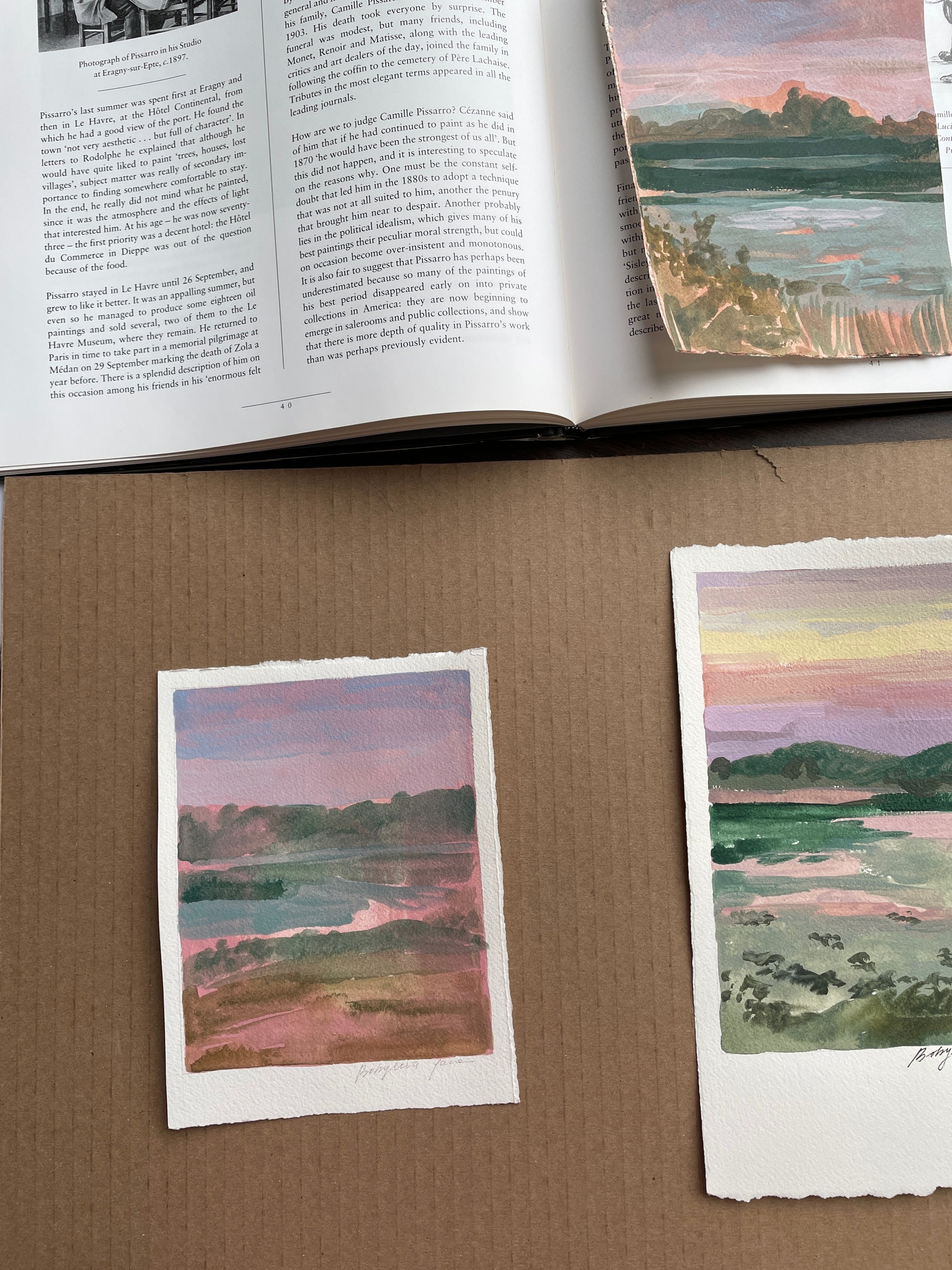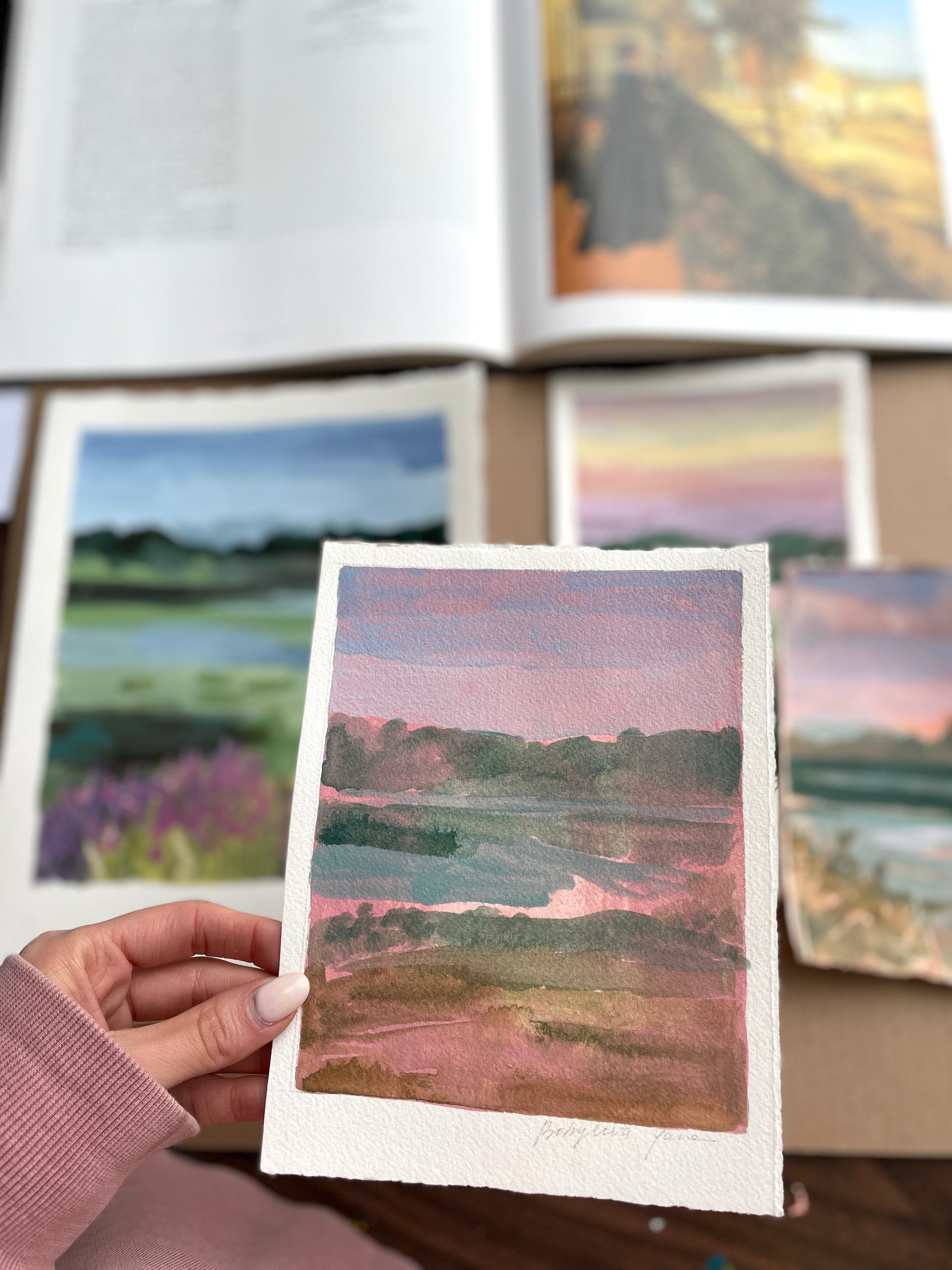 X SOLD Sunset Landscape. Acrylics on watercolor paper.